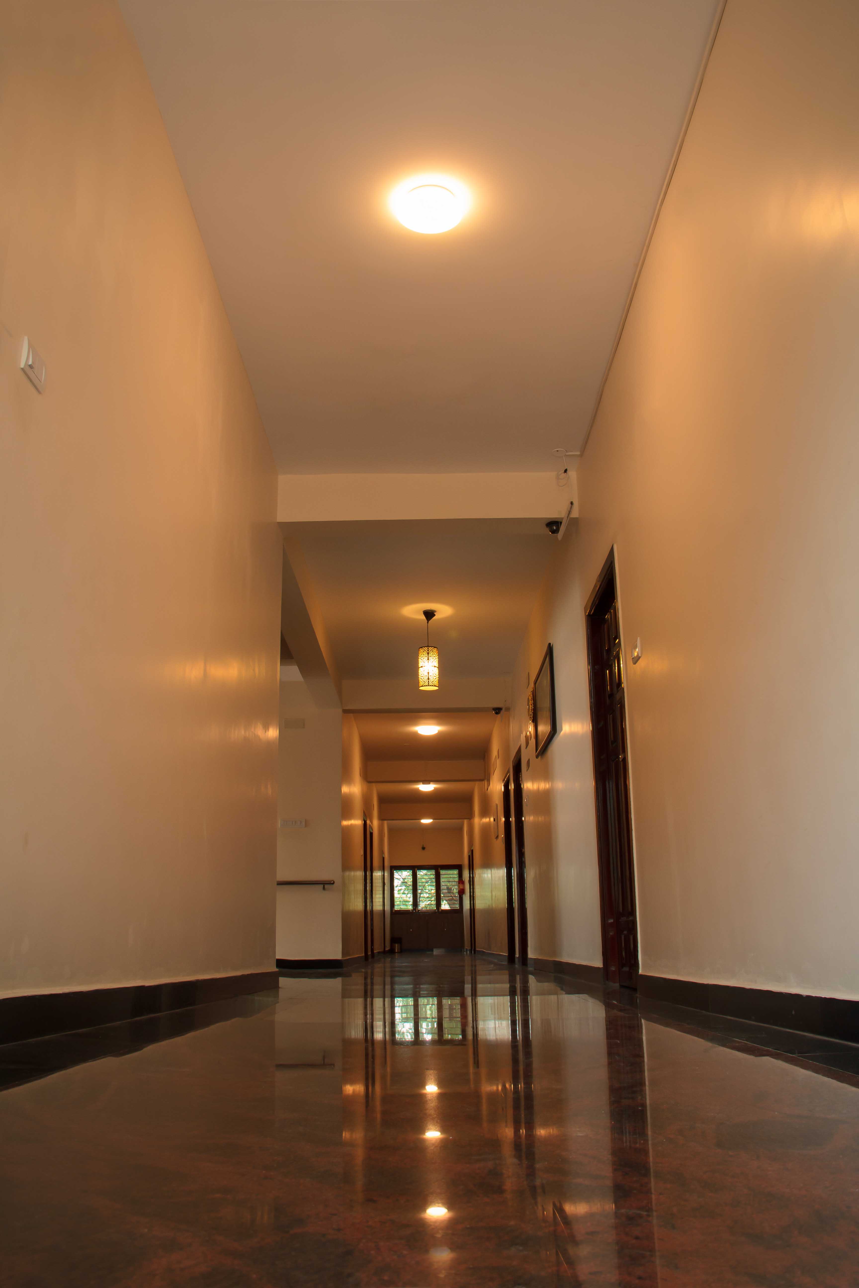 The hotel offers spacious rooms and bathrooms and is well regarded for its cleanliness, simplicity, and calm atmosphere. The interiors are minimalistic and neatly maintained, with subtle divine artwork placed across the property, adding a gentle spiritual touch.
