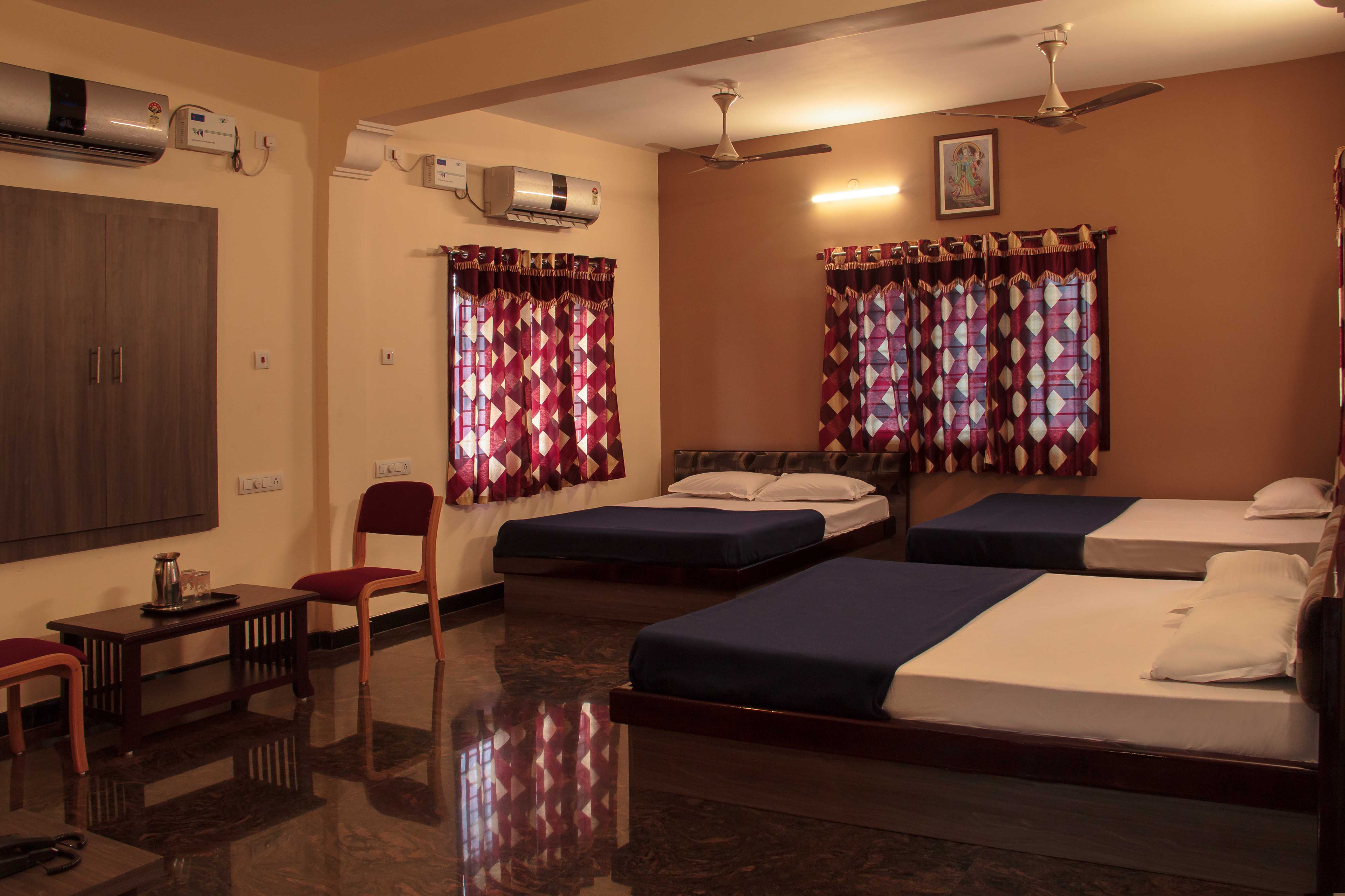 Well suited for pilgrims & families visiting Srirangam, the hotel maintains a no-smoking and no-alcohol environment, ensuring a quiet, safe, and family-friendly stay. Designed to be comfortable for elderly guests as well, Hotel Sri Hayagriva offers a serene and convenient stay in the heart of the temple town. With its central location and peaceful setting, Hotel Sri Hayagriva is an ideal choice for guests seeking comfort, clarity, and tranquillity in the heart of Srirangam.